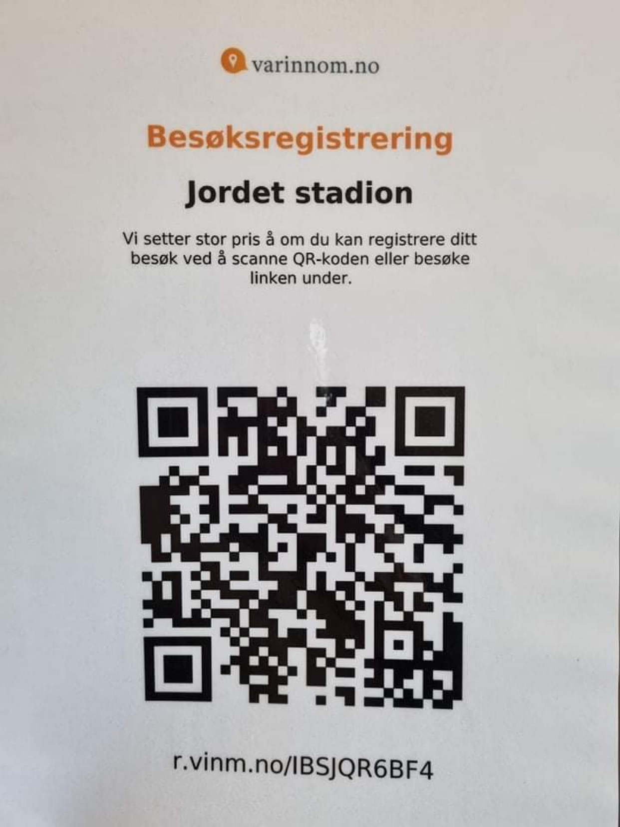 Pandemien er ikke over og forholdsregler må tas. Vi har fått QR-registrering på bana og alle oppfordres til å bruke den på kamper. Skann koden og registrer dit besøk. Har du ikke muliget for QR-skanning, kan du registrere besøket ditt i kiosken.