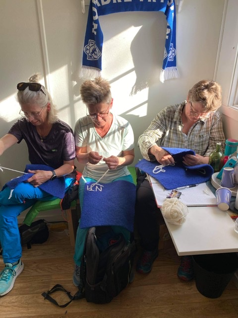 Syklubben «Knute på trå’n» har strikket sitteunderlag til å ha i kvilbua på Omformer’n. Underlagene er på plass der nå og syklubben håper dem kan varme noen rumper i høst og vinter.