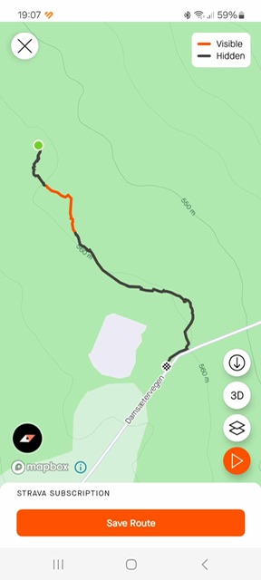 Kort og lettgått tur markert med gule bånd starter ved parkeringen oppe ved skola, gå stien som man går opp til Bristolkoia i ca 130m, der står en stor tall med en grønn fuglekasse på, ta til venstre gå 30m så er du ved kassa, fort gjort sa elgen som datt i fangstgropa😃