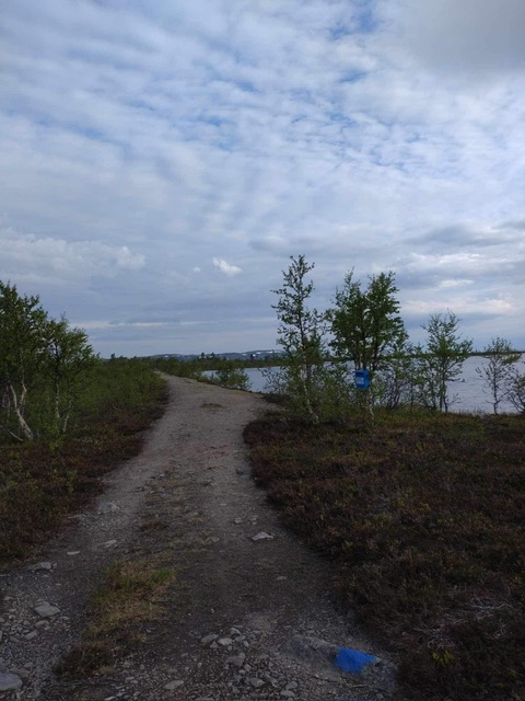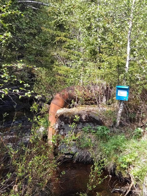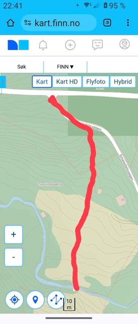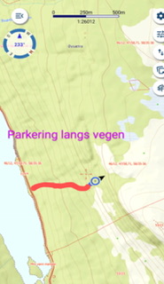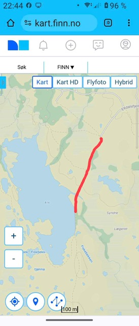 Gå veien videre ned til sjøen. Når du kommer ned til vannet, går du til venstre, over brua, og fortsetter veien på andre siden mot demningen hvor kassa henger. Kan være noe bløtt i veien ned til sjøen, men ikke noe problem. Ca 500 - 600 m å gå.