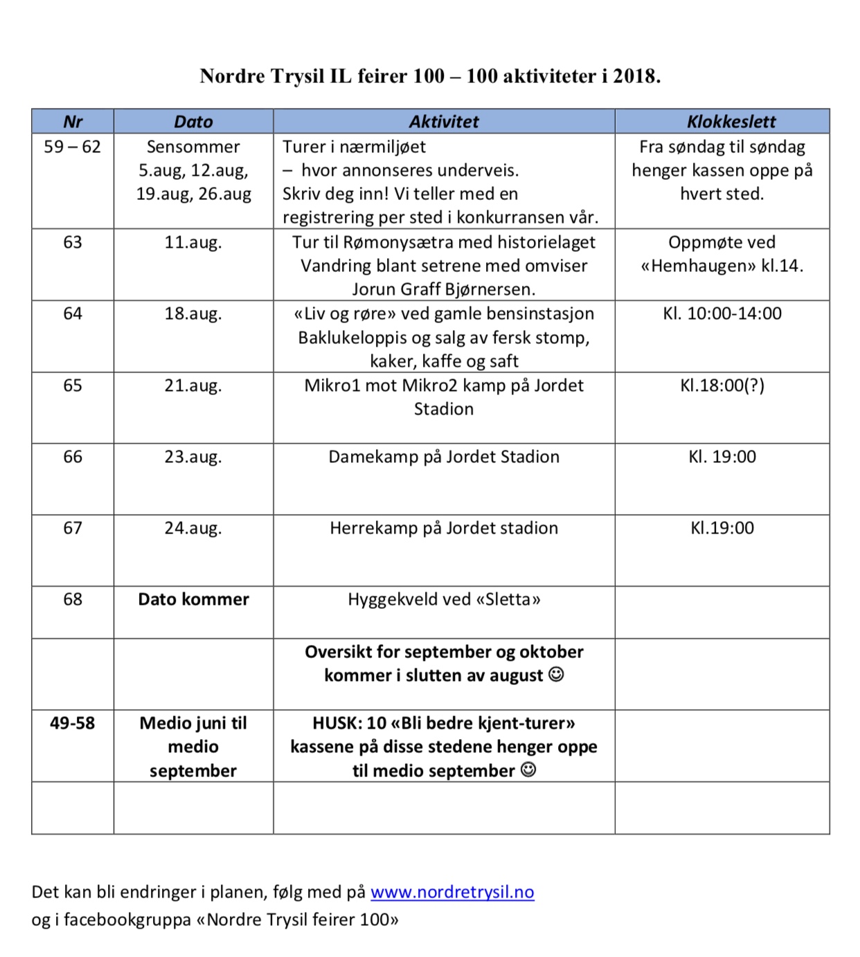 Aktivitet 59 - 68 Skrevet av Wenche Holdbak 07. august 2018. Publisert i NTI 100 år Aktiviteter i august er klare.